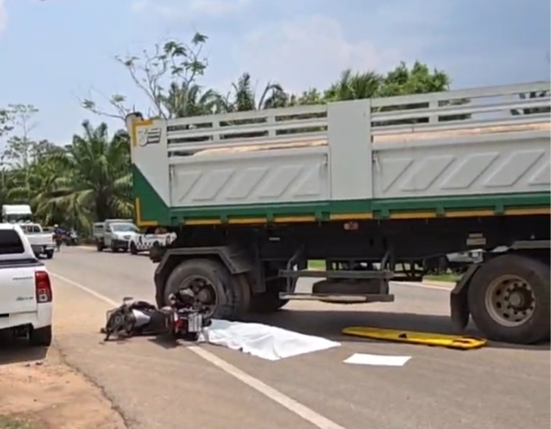 พ่วง18ล้อชนกับรถ จยย.มีผู้เสียชีวิตคาที่ 1 รายเหตุเกิดที่บริเวณใกล้วัดโภเรียง ต.กระบี่น้อย อ.เมือง จ.กระบี่