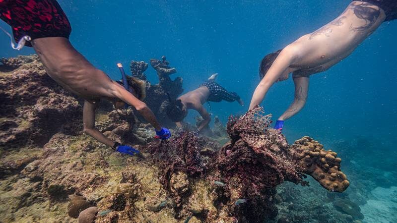 ภารกิจหลักของเราในสามวันนั้นคือการดำน้ำสำรวจปะการังด้วยและเก็บขยะ ซึ่งน้องๆเขาสามารถทำได้โดยไม่ต้องใช้อุปกรณ์แม้ว่าจะต้องดำน้ำไป 10 กว่าเมตรเขาสามารถดำลงไปตัดอวนและดึงกลับขึ้นฝั่งเร็วกว่าเจ้าหน้าที่บนเกาะเอง + เมื่อเราทำภารกิจสำรวจแนวปะการัง น้องๆสามารถชี้และสังเกต สัตว์ทะเลและเศษอวนเร็วกว่าทุกๆคนในกลุ่มทีมงาน